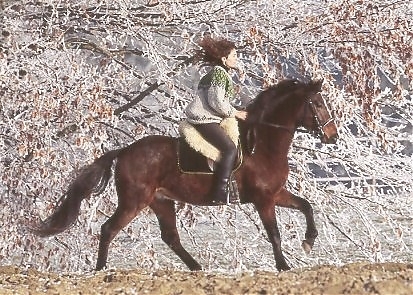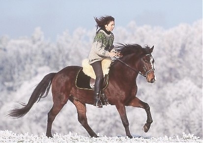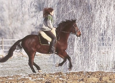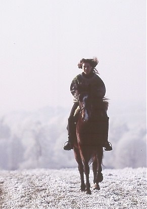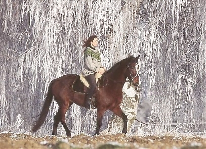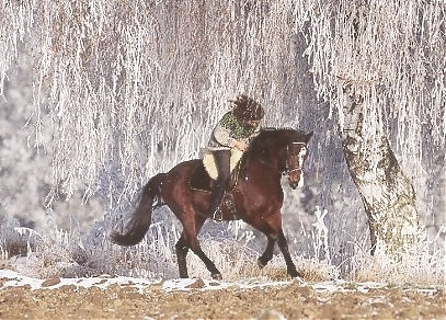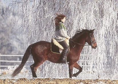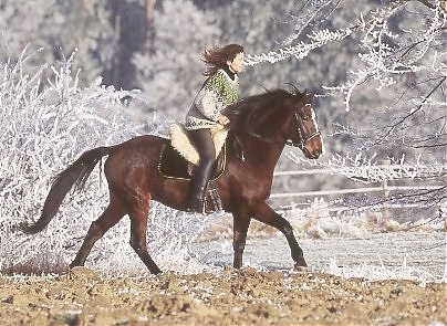 - Ramona Dünisch & Ausbildungspferd Lusitano-Wallach "Gitano" im Raureif