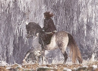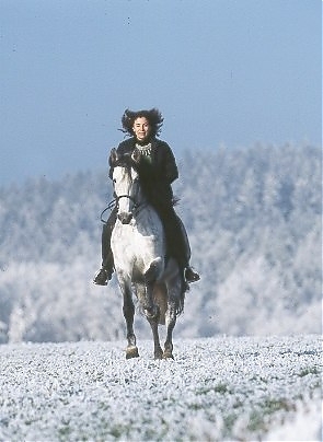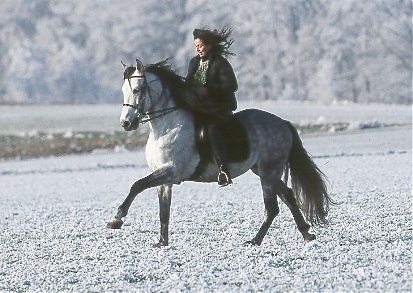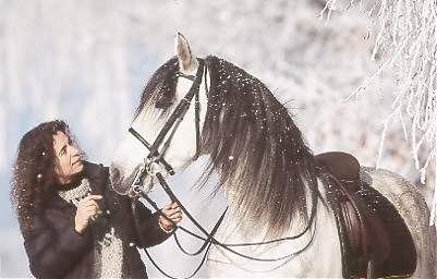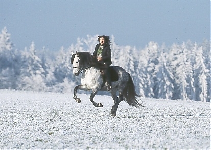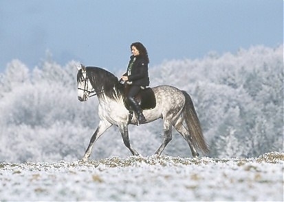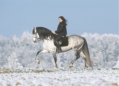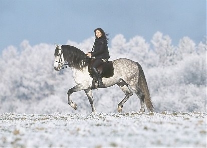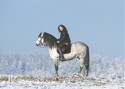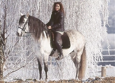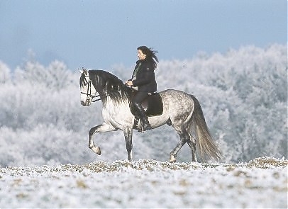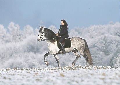 - Ramona Dünisch & ihr P.R.E.-Hengst "Ramonn" im Raureif